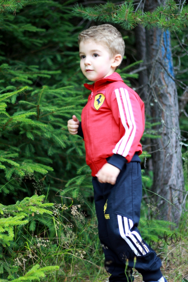 Комплект анцуг с модерни надписи. Екипът не е ватиран и е подходящ за пролет и есен. Горнището се закопчава с цип, а долнището е с ластик на кръста и отдолу.