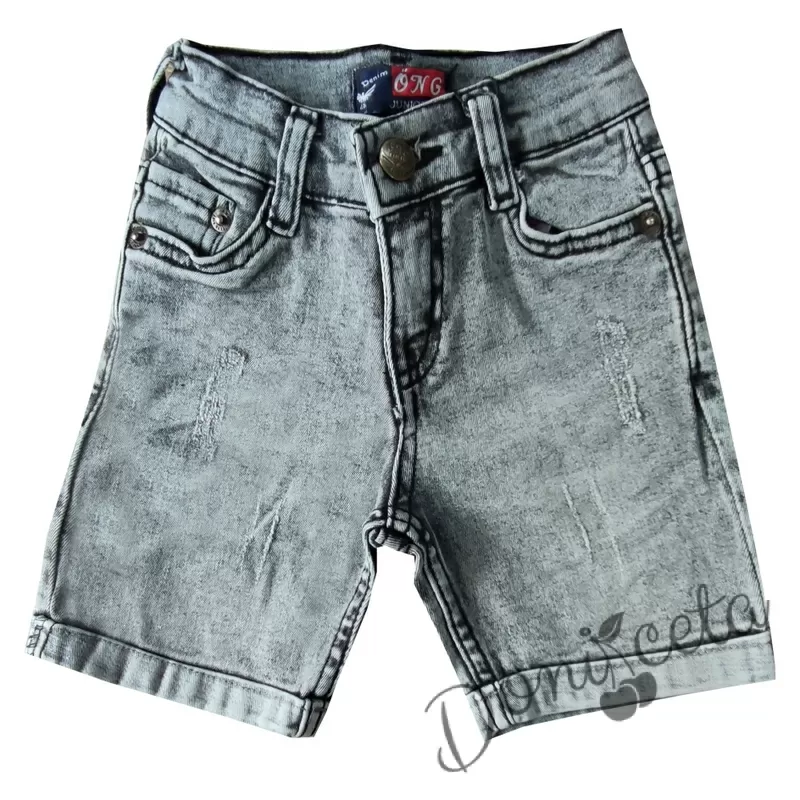 Комплект от риза с къс ръкав в сиво и къси дънки 8658678