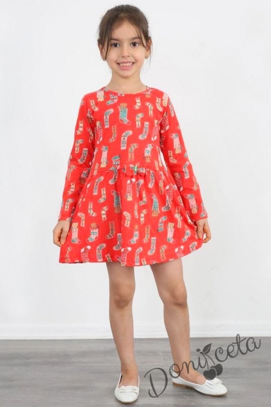 - Удобна и забавна детска рокличка в червено с коледни чорапчета.