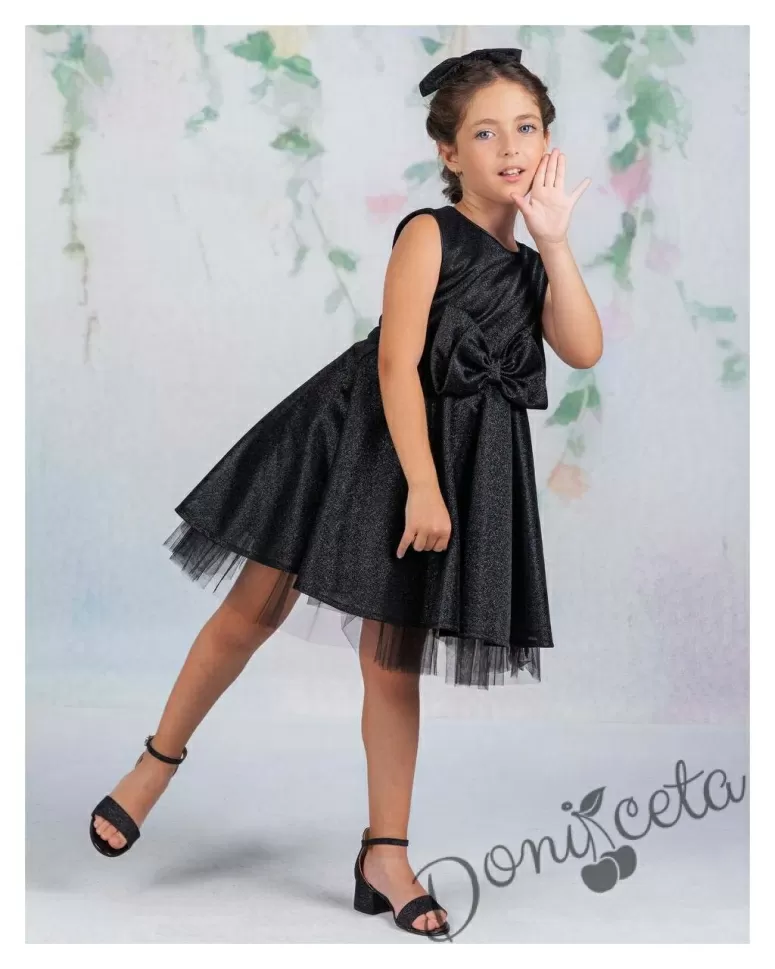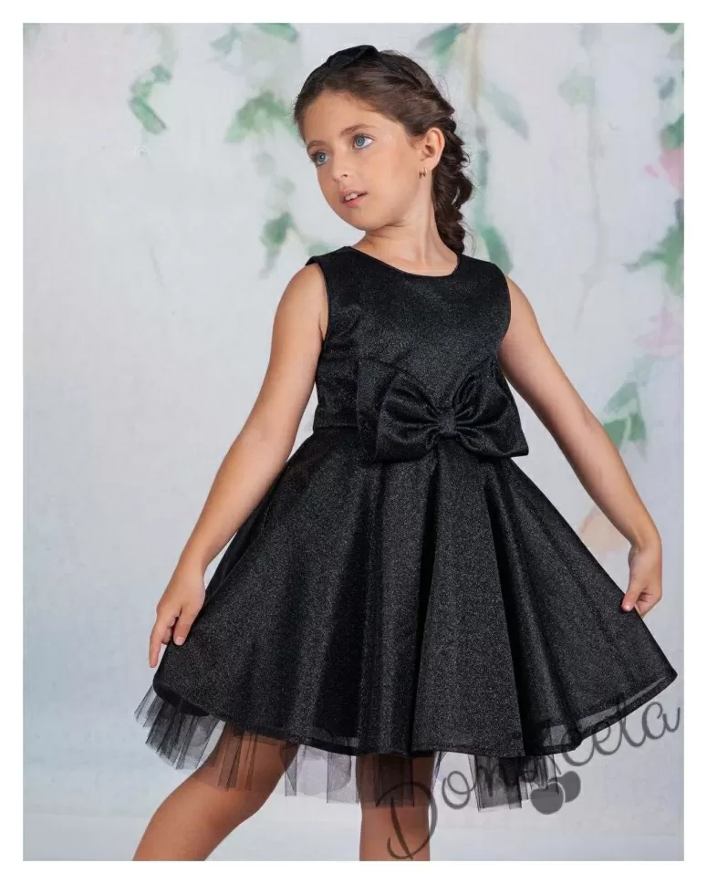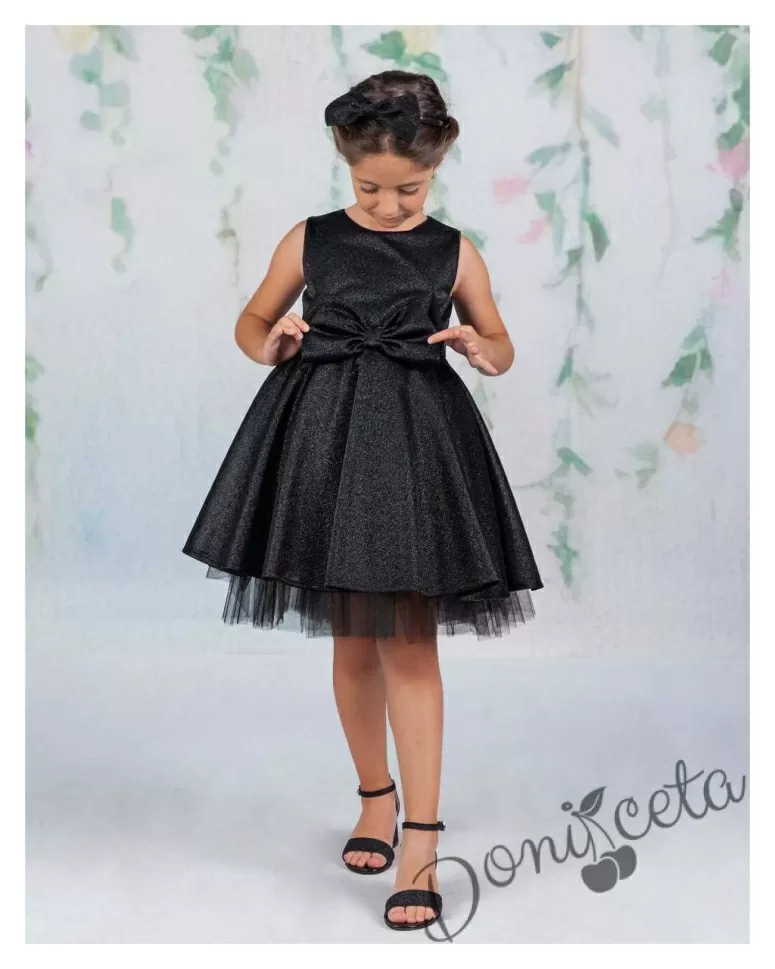 - Изключителн красива рокличка изцяло с брокат с къс ръкав в черно цвят.