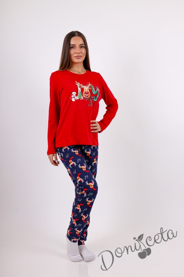 - Прекрасна памучна коледна пижамка в червено с коледна картинка