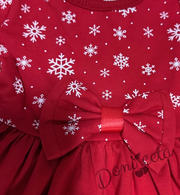Бебешка/детска коледна рокля в червено със снежинки в горната част и отдолу