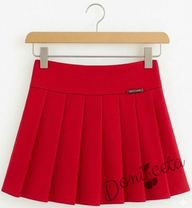 - Детска плисирана пола в червено.