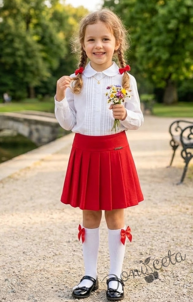 Детска пола в червено за момиче Тамара тип плисирана