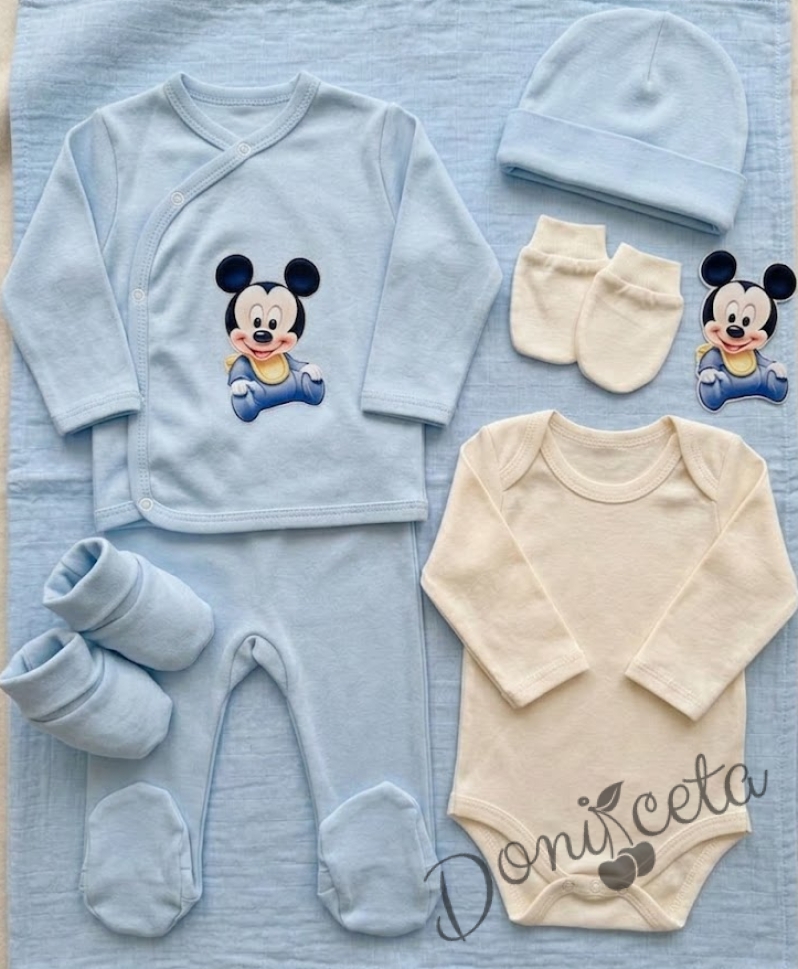 Комплект за изписване на момче от 7 части с Мики Маус - блуза тип ,,прегърни ме", ританки, боди, пелена, шапка, ръкавички и буйки