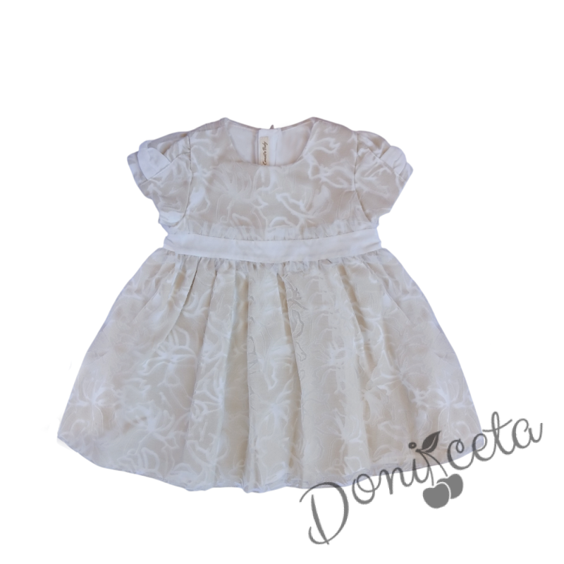 - Нежна детска рокля с къс ръкав в екрю с 3D цветя.