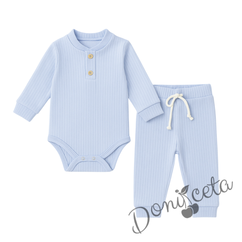 Бебешки рипсен комплект за момче от боди и панталонки в светлосиньо