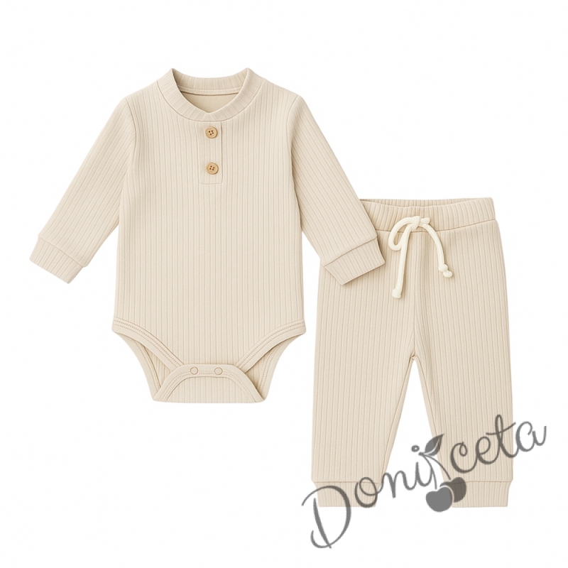 Бебешки рипсен комплект за момче от боди и панталонки в бежово