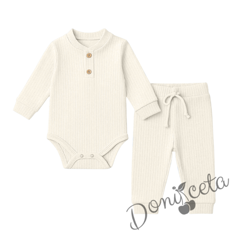 Бебешки рипсен комплект за момче от боди и панталонки в екрю