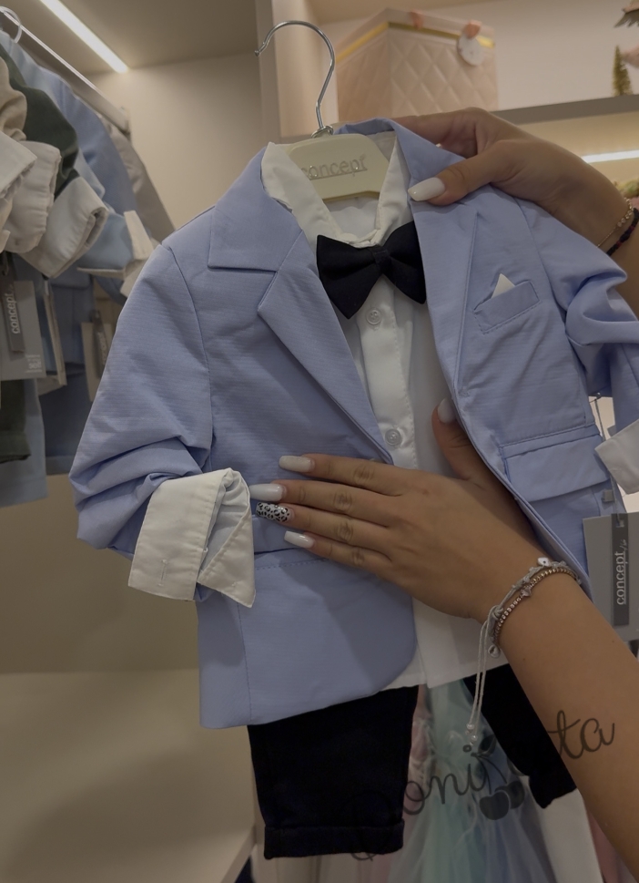 - Сако: Стилно сако в нежен светлосин цвят, идеално за малки джентълмени.