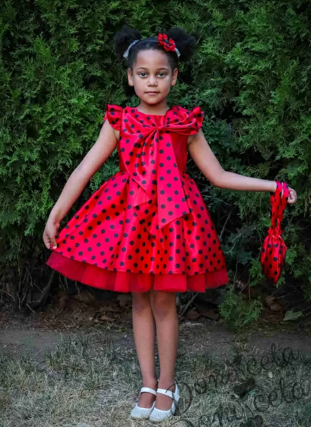 Вашето малко момиче ще изглежда като принцеса с тази невероятна официална рокля! Моделът е изработен от висококачествена материя в червен цвят с изящна флорална бродерия в бяло. Горната част е украсена с красиви цветни мотиви и колан с декоративно цвете на талията, което придава допълнителен чар. Роклята има ефирни тюлени ръкавчета и обемна пола, която стои прекрасно разкроена.
