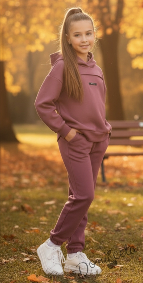 Комплект за момиче от блуза с качулка и долнище Contrast в пепел от рози