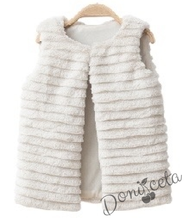 Подарете топлина и стил на вашата малка принцеса с нашия детски пухкав елек в нежен бежов цвят! Този очарователен елек е перфектното допълнение към гардероба на всяко момиченце, осигурявайки комфорт и моден акцент в едно.