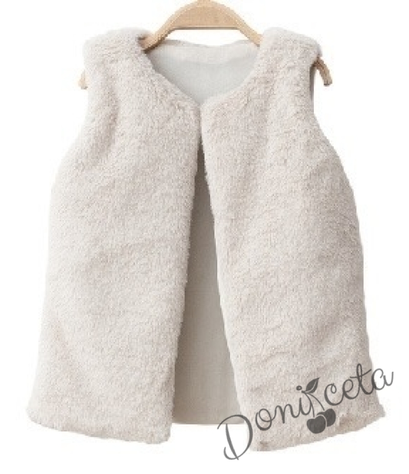 Подарете топлина и стил на вашата малка принцеса с нашия детски пухкав елек в нежен бежов цвят! Този очарователен елек е перфектното допълнение към гардероба на всяко момиченце, осигурявайки комфорт и моден акцент в едно.
