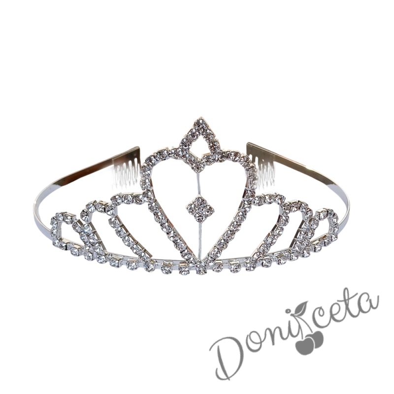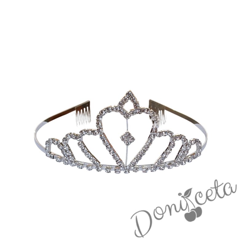 Тиарата е украсена с бляскави кристали, които привличат погледа и добавят завладяващ блясък. Те са внимателно подбрани и поставени, за да осигурят максимален ефект и да направят тиарата наистина специална. Кристалите блестят и се отразяват на светлината, създавайки магическа атмосфера около носещия я.