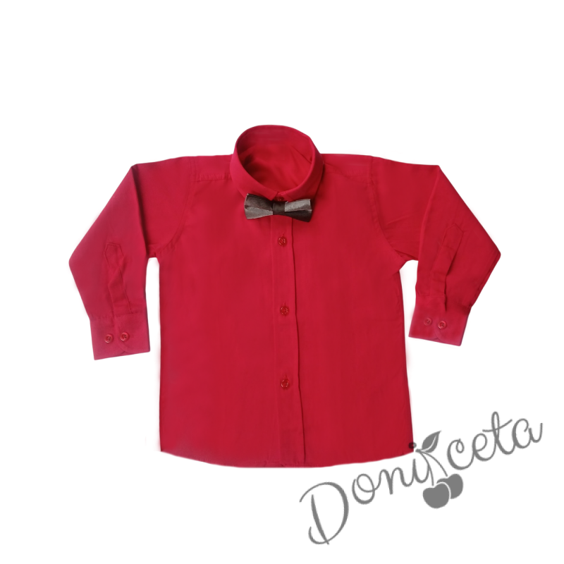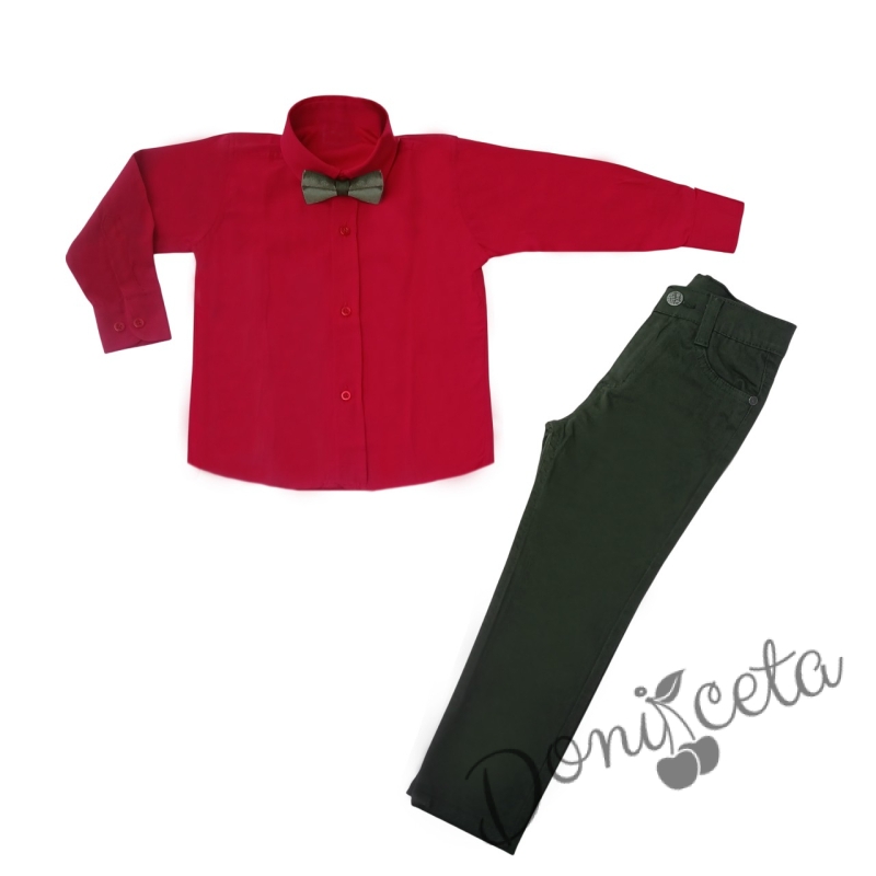 Представяме Ви нашия елегантен и стилен празничен комплект за момче от 3 части- риза в червено, панталони в зелено и папийонка.