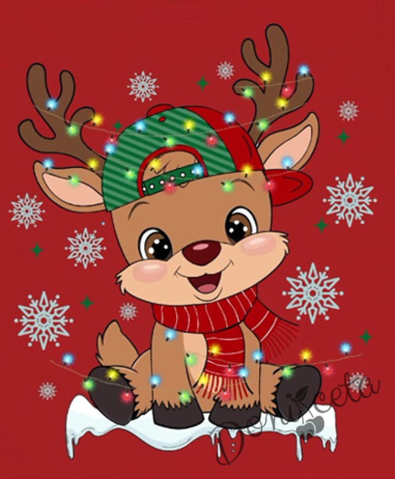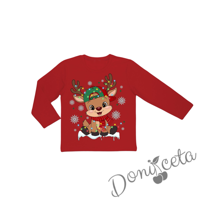 Начало МОМИЧЕТА Коледна блуза в червено с дълъг ръкав и картинка на еленче