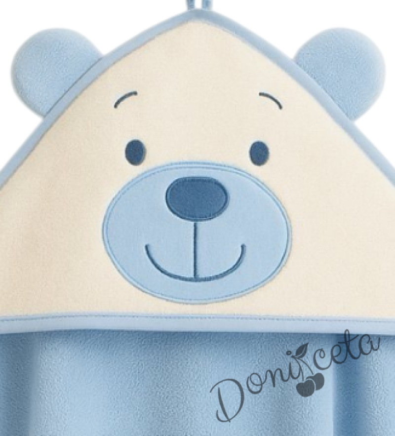Детска хавлия за баня с качулка в светлосиньо и бяло с мече