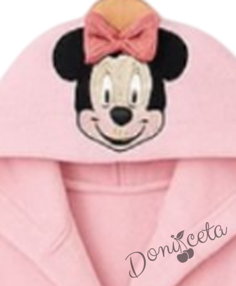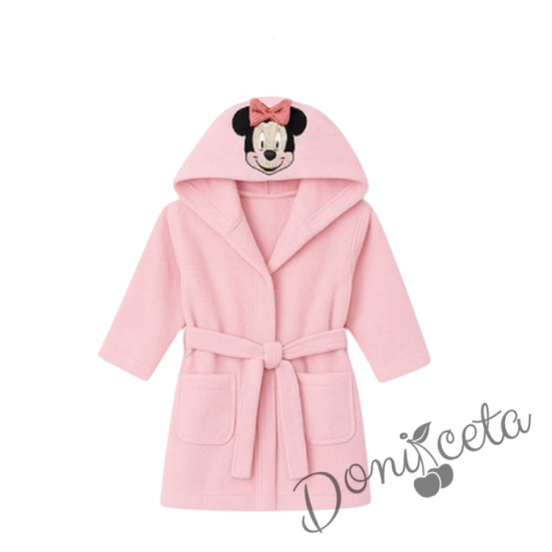 Детски халат за баня с качулка с Мини Маус и джобчета в розово
