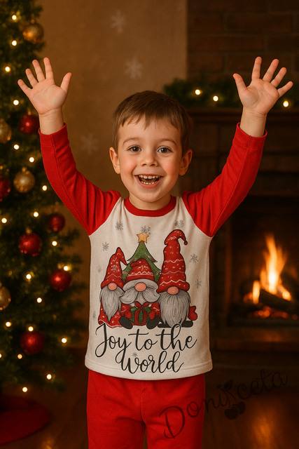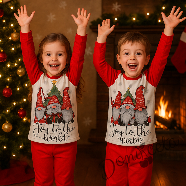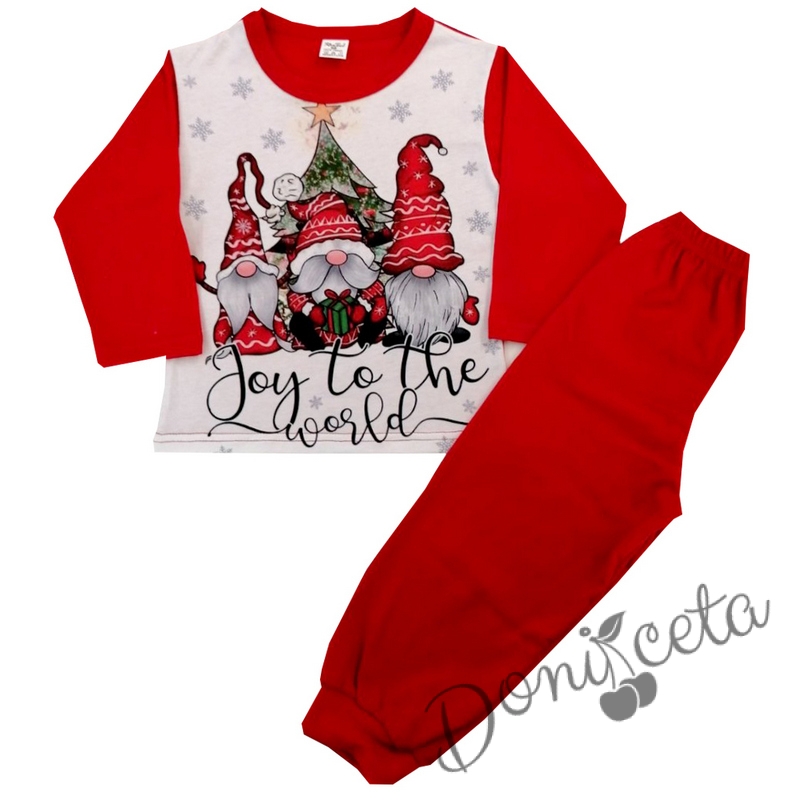 Детска коледна пижамка в червено с джуджета за момче или момиче