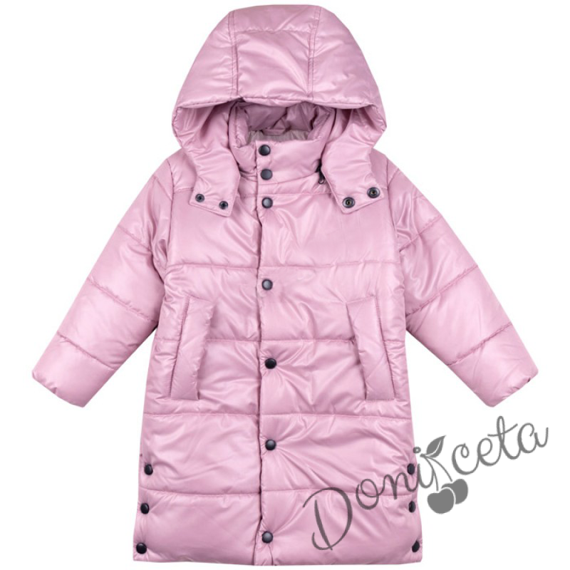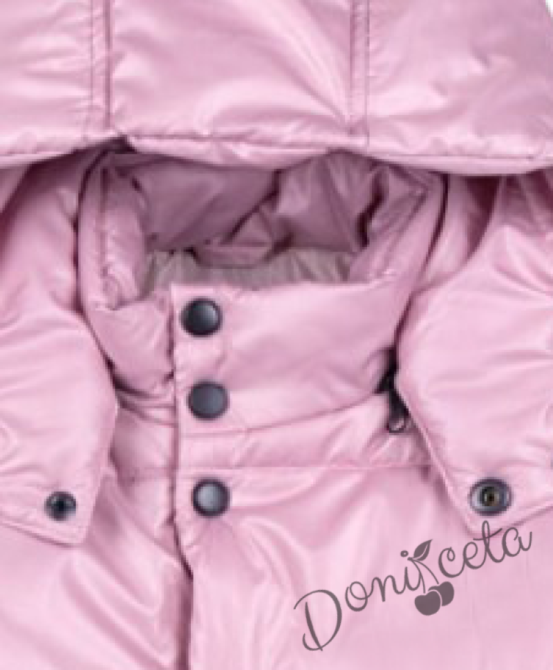 Начало МОМИЧЕТА Детско зимно яке за момиче с качулка в пепел от рози