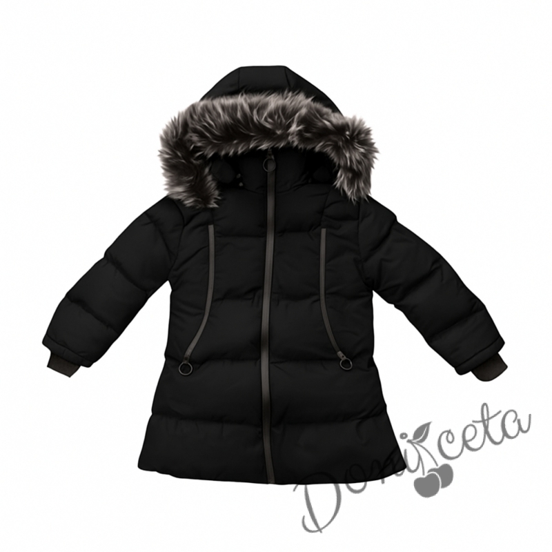 Начало МОМИЧЕТА Детско зимно яке за момиче с качулка в черно