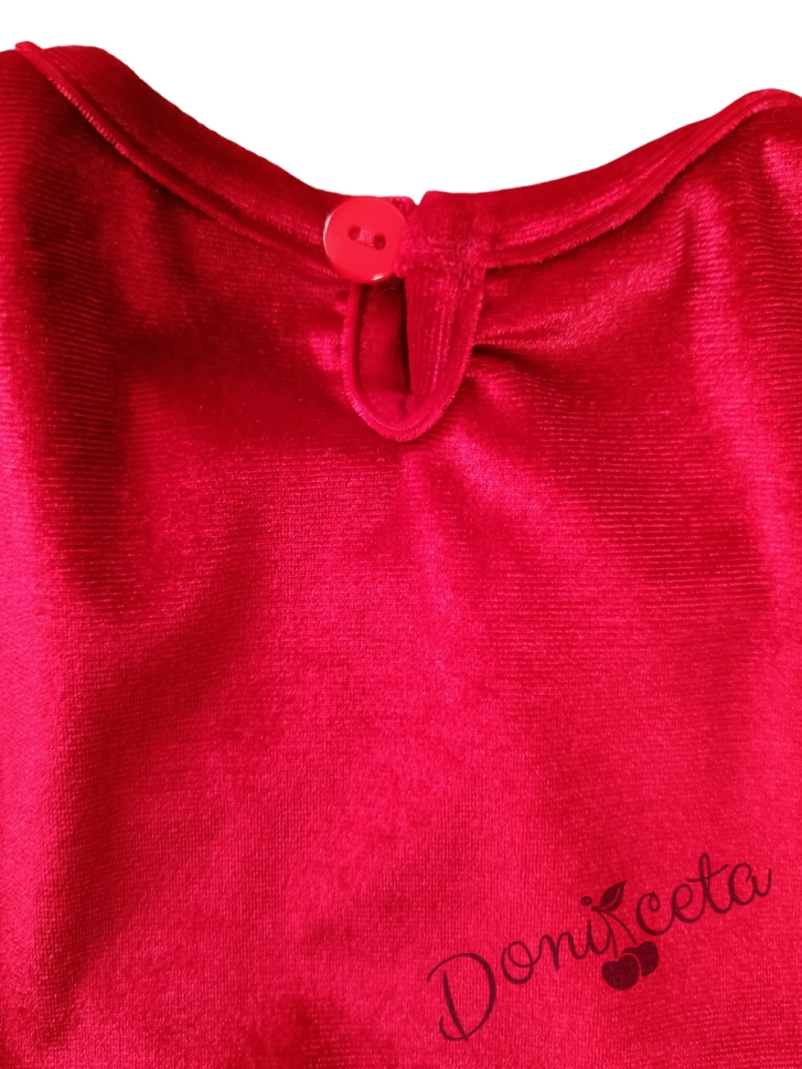 - Детска рокля от плюш в червено с дълъг ръкав.