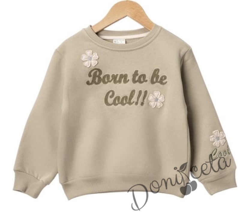 Детска ватирана блуза с дълъг ръкав в бежово с цветенца