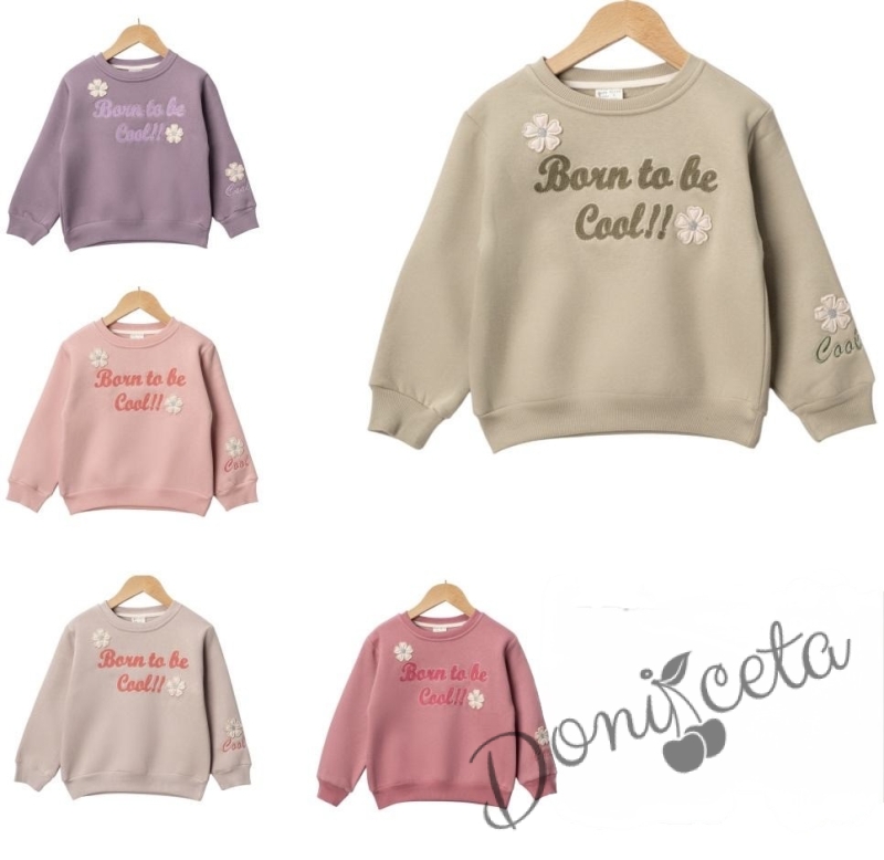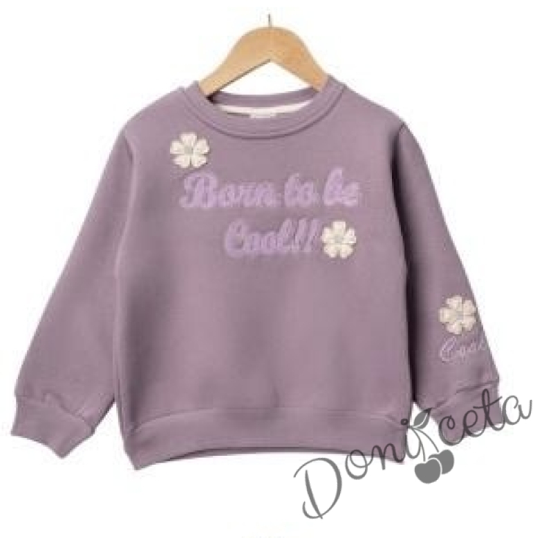 Детска ватирана блуза с дълъг ръкав в лилаво с цветенца
