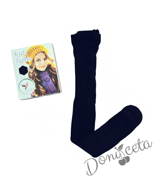 Детски плътен чорапогащник в тъмносиньо от памук с ликра