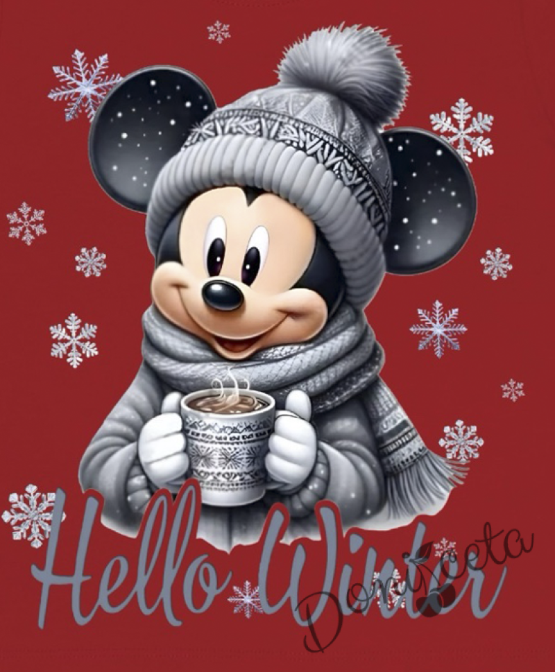 Начало МОМИЧЕТА Коледна блуза в червено с дълъг ръкав и картинка на Мики Маус