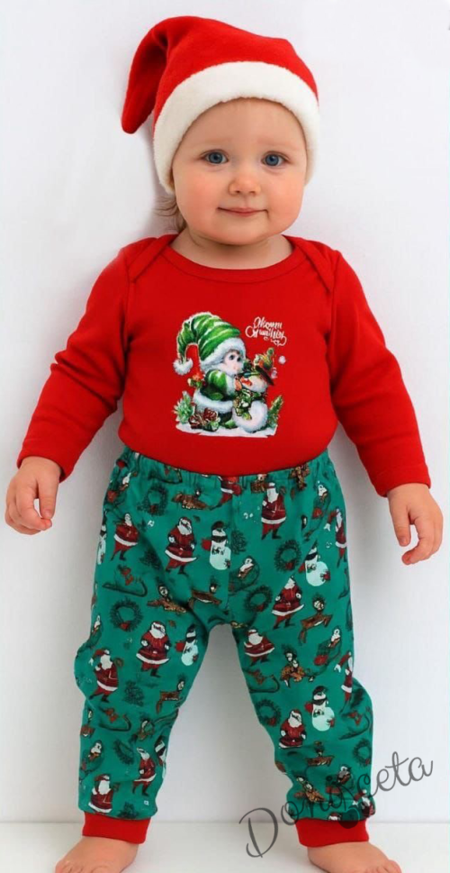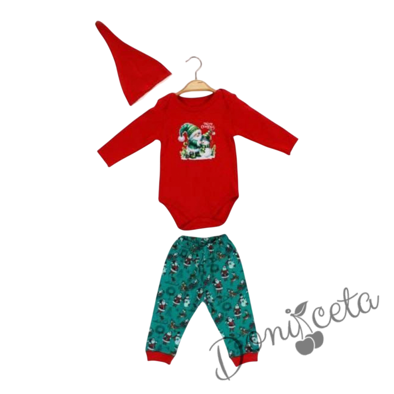 Бебешки коледен комплект от 3 части-боди с коледна картинка, панталонки и коледна шапка