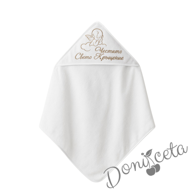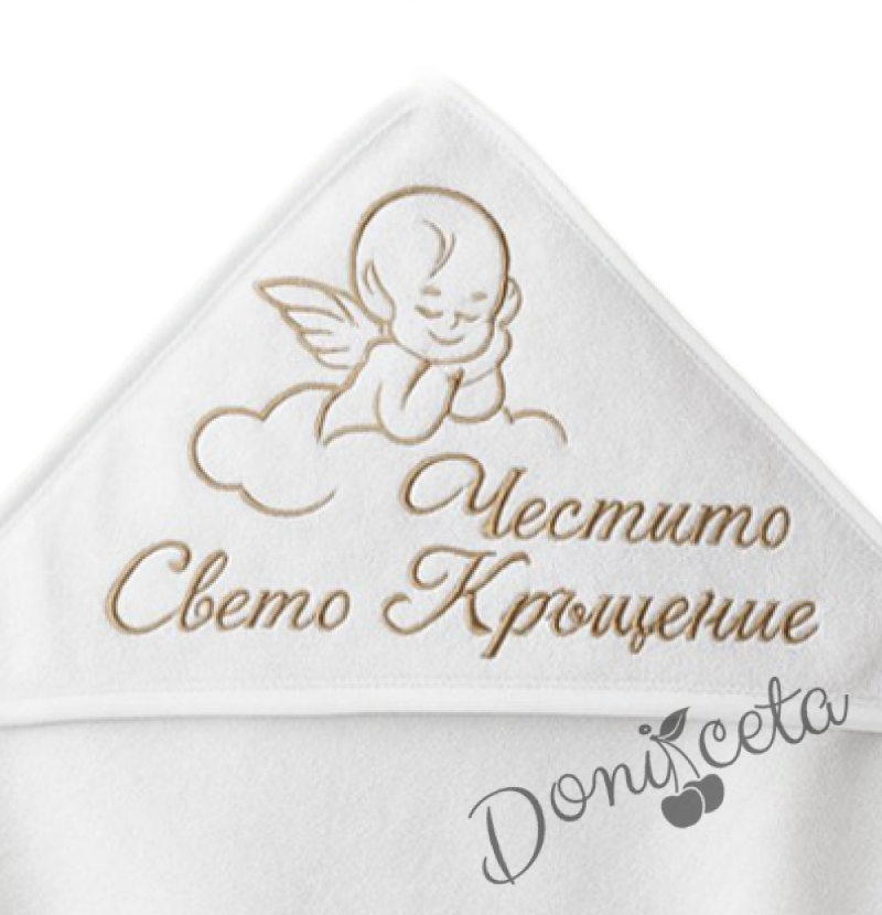 Детска хавлия за кръщене в бяло с надпис в златисто