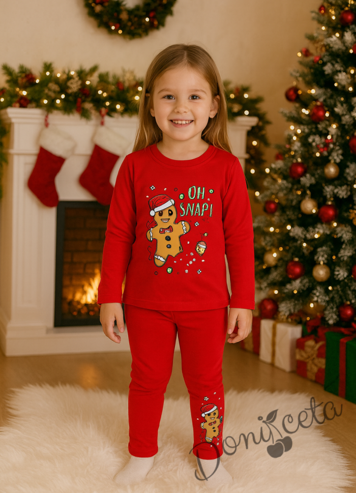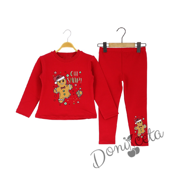 Коледен детски ватиран комплект от блуза в червено и клин с коледни мотиви