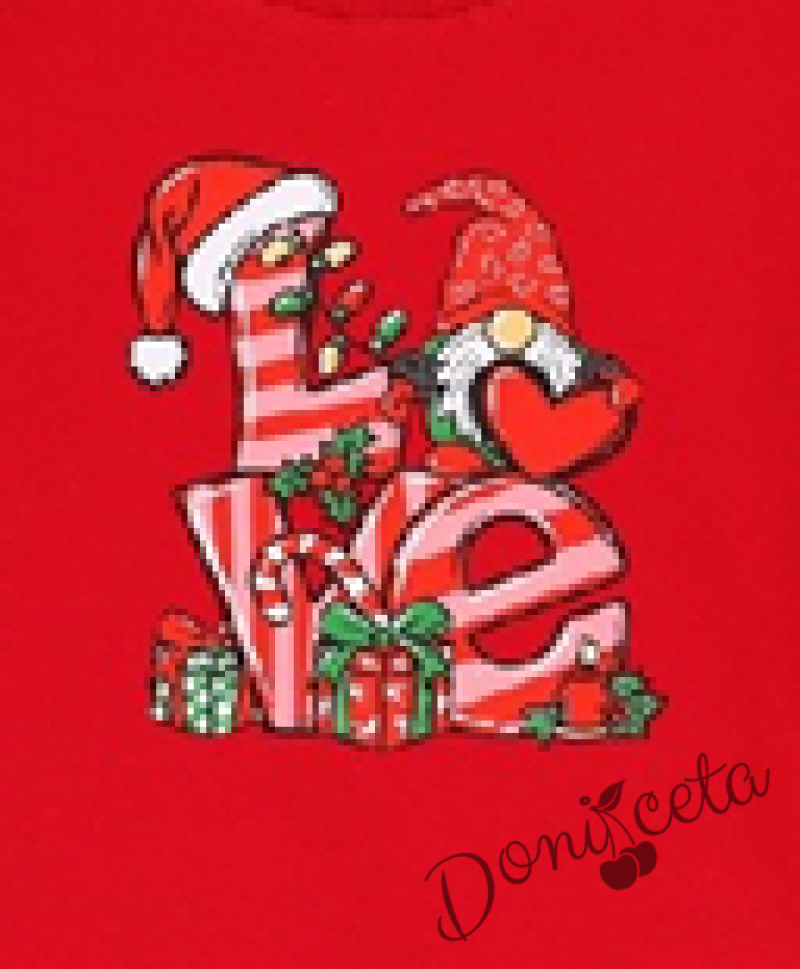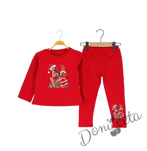 Коледен детски ватиран комплект от блуза в червено с коледна картинка и клин в червено