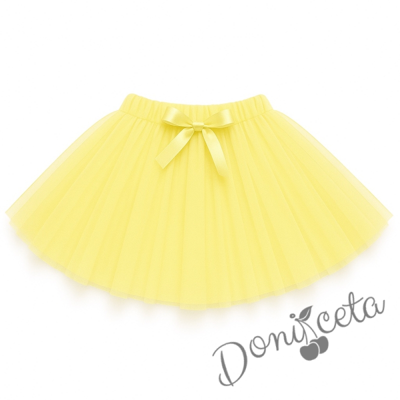 Детска туту пола с богат тюл в жълто с панделка отпред