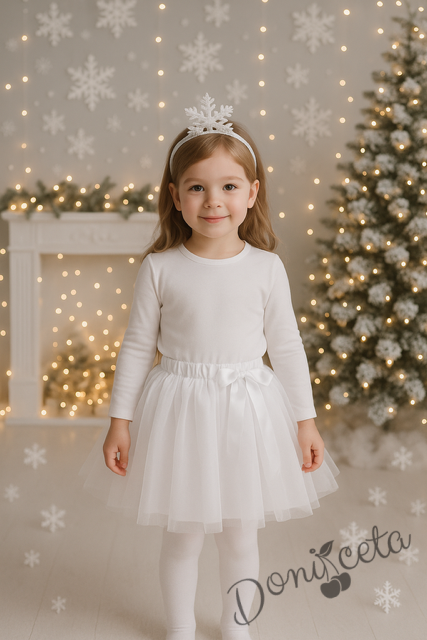 Начало КОЛЕДНА КОЛЕКЦИЯ ЗА ДЕЦА КОЛЕДНИ ДРЕШКИ ЗА МОМИЧЕ Комплект от 2 части-детска пола Славейка от тюл в бяло и блузка с дълъг ръкав