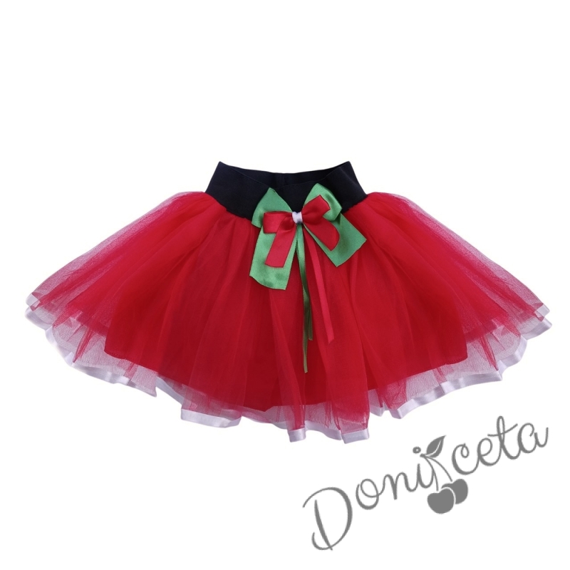 - Комплект от боди в бяло с надпис, туту пола пачка в червено и лента за коса.
