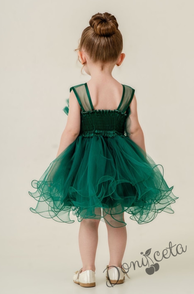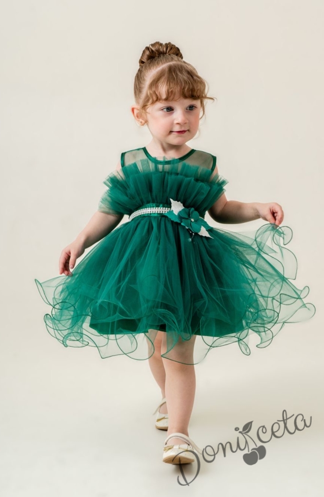 Официална детска къса рокля Хейли в зелено с тюл без ръкав от колекция Зелениада