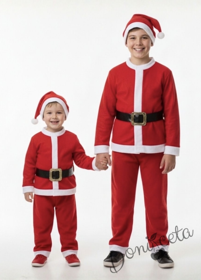 Детски коледен тънък комплект в червено- костюм на Дядо Коледа за момче