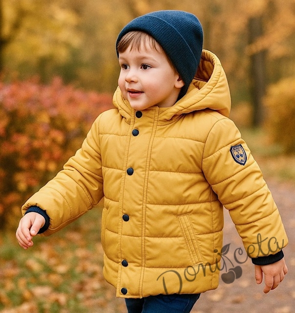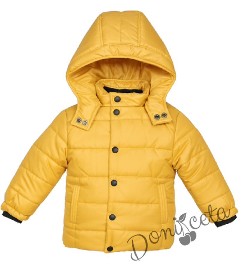 Детско зимно яке с качулка в горчица с качулка и джобове