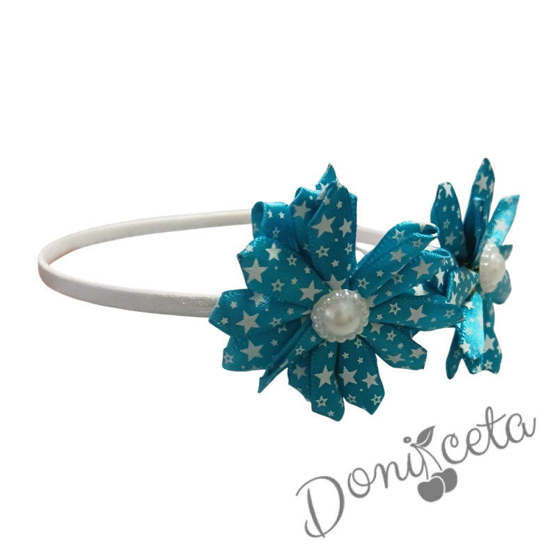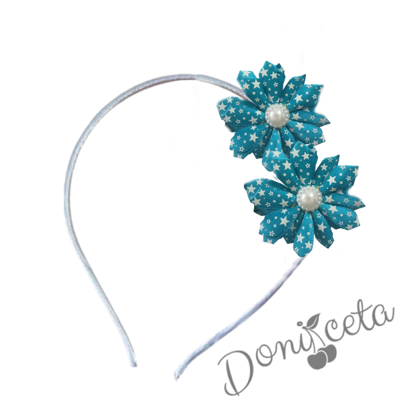 Диадема за момиче в тюркоаз с цветя със звездички