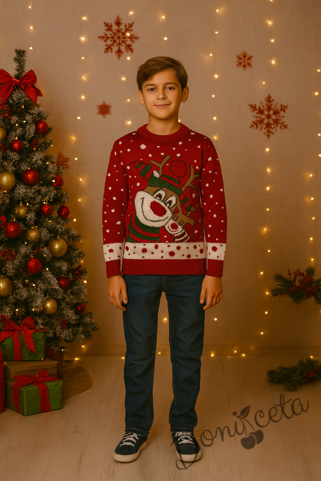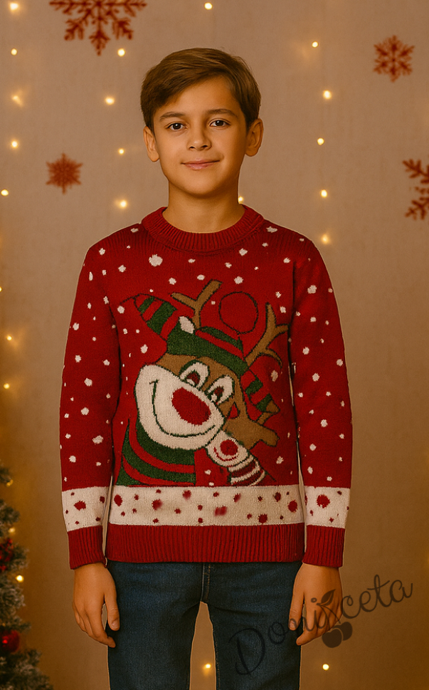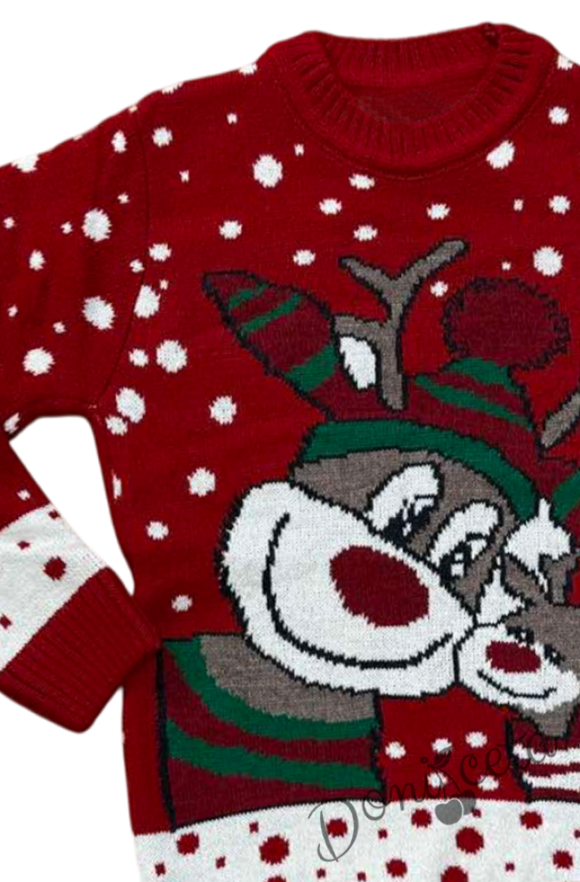 - Детски коледен пуловер с коледни мотиви със сладки еленчета.