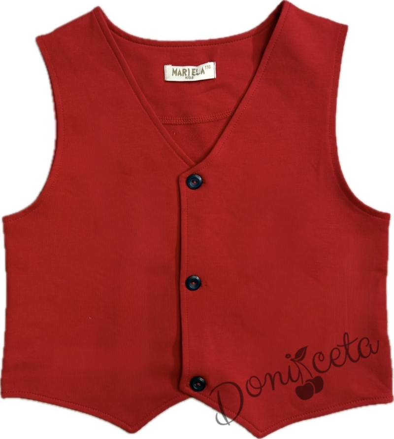 - Елекът е от памучно трико, което е много удобно за дечицата, а отпред се закопчава с копчета.
