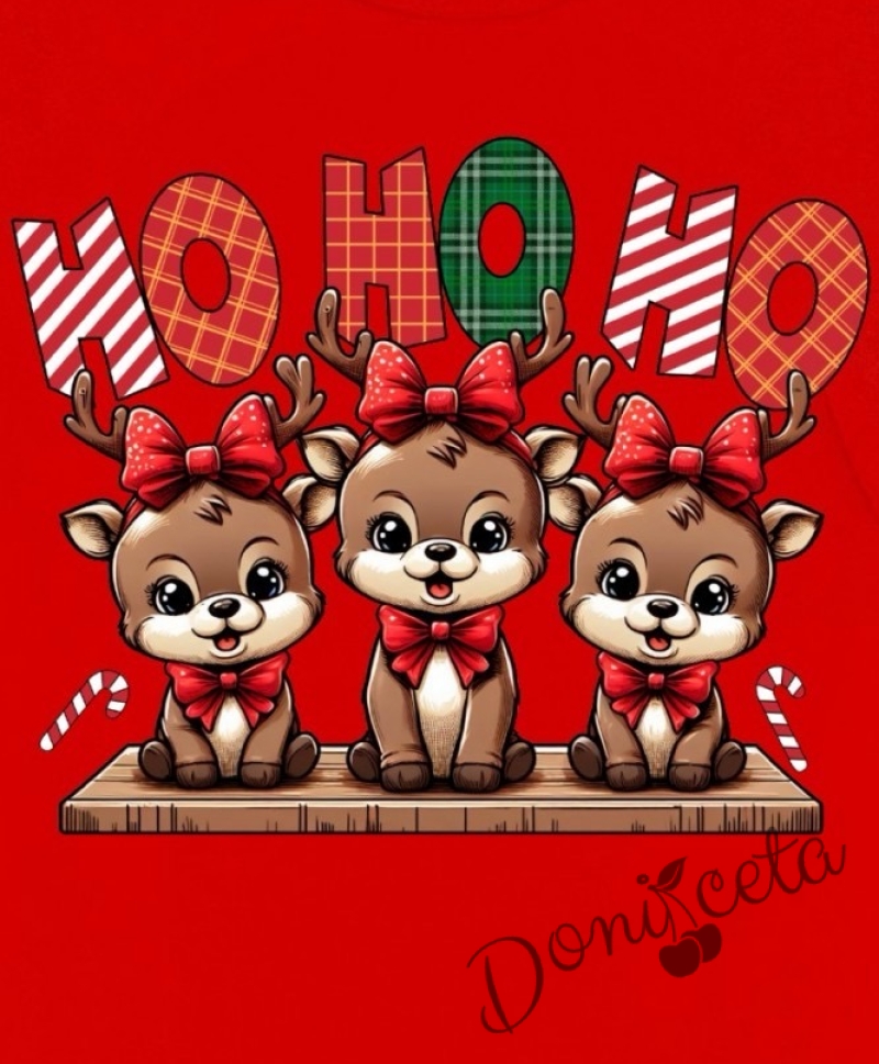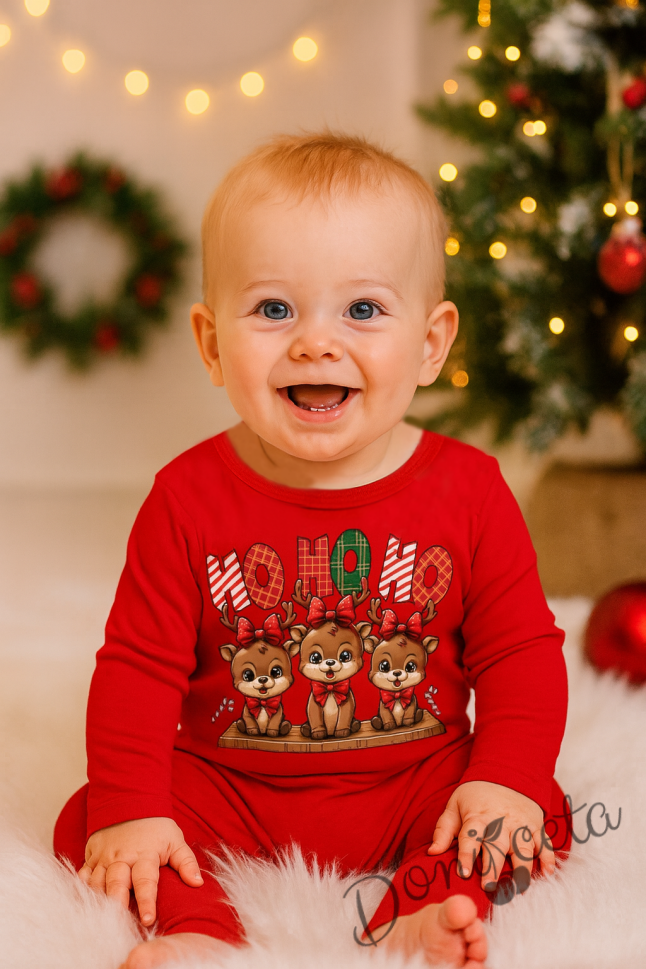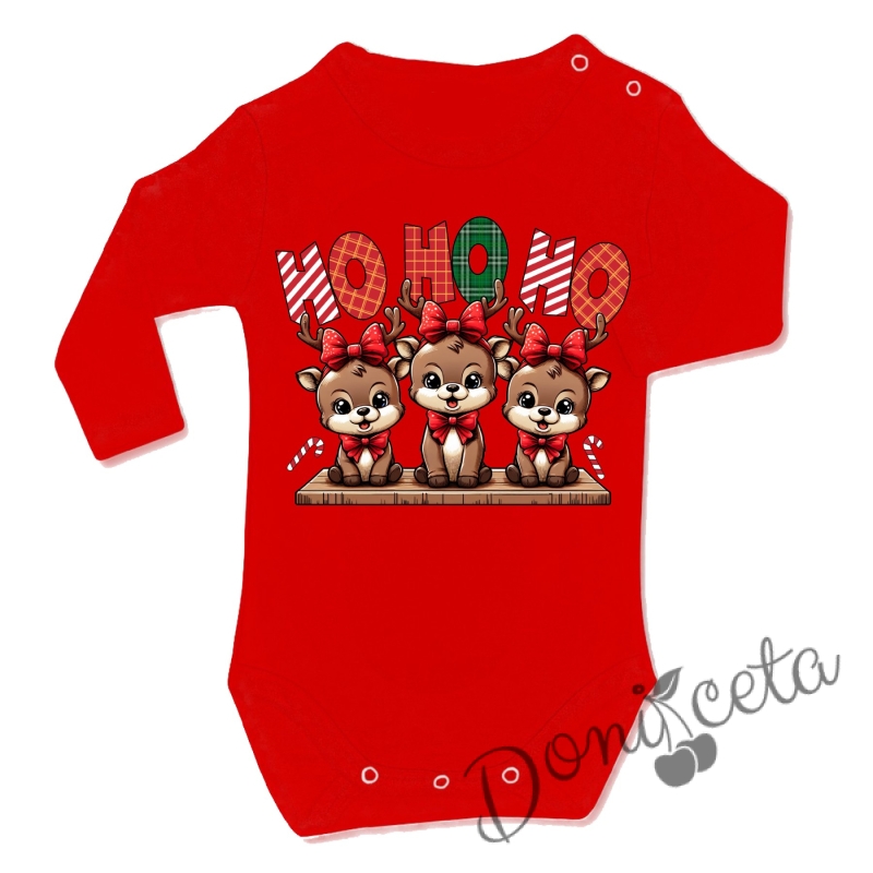 Коледно бебешко боди с дълъг ръкав в червено със сладки еленчета и надпис