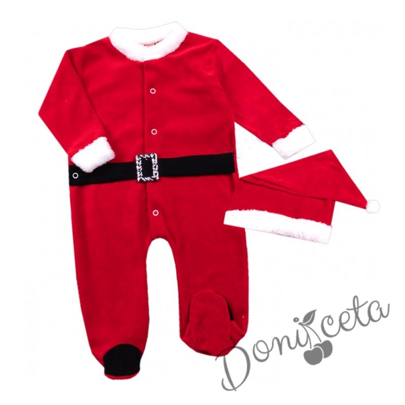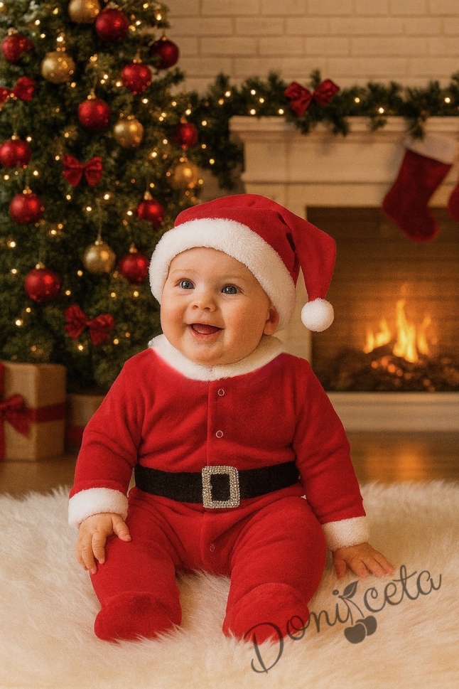 Бебешки коледен гащеризон Дядо Коледа от плюш с коледна шапка
