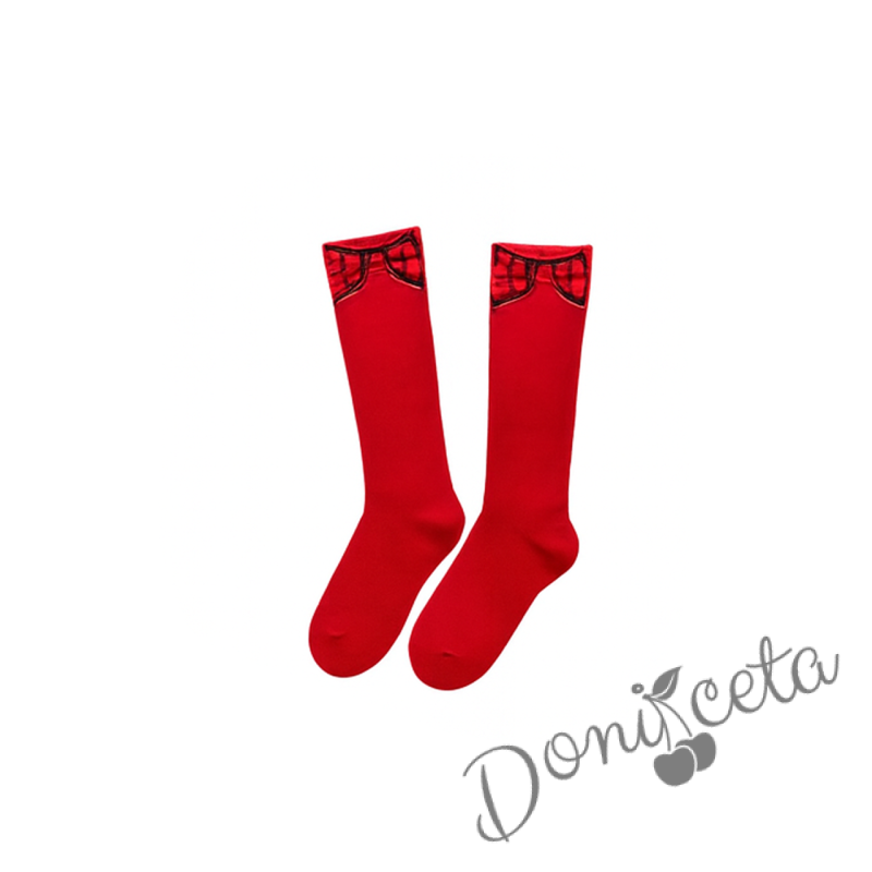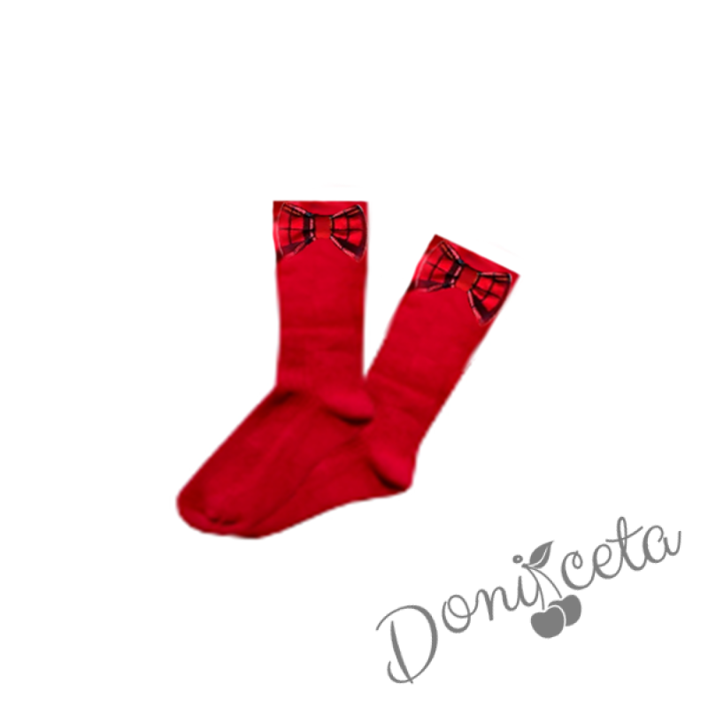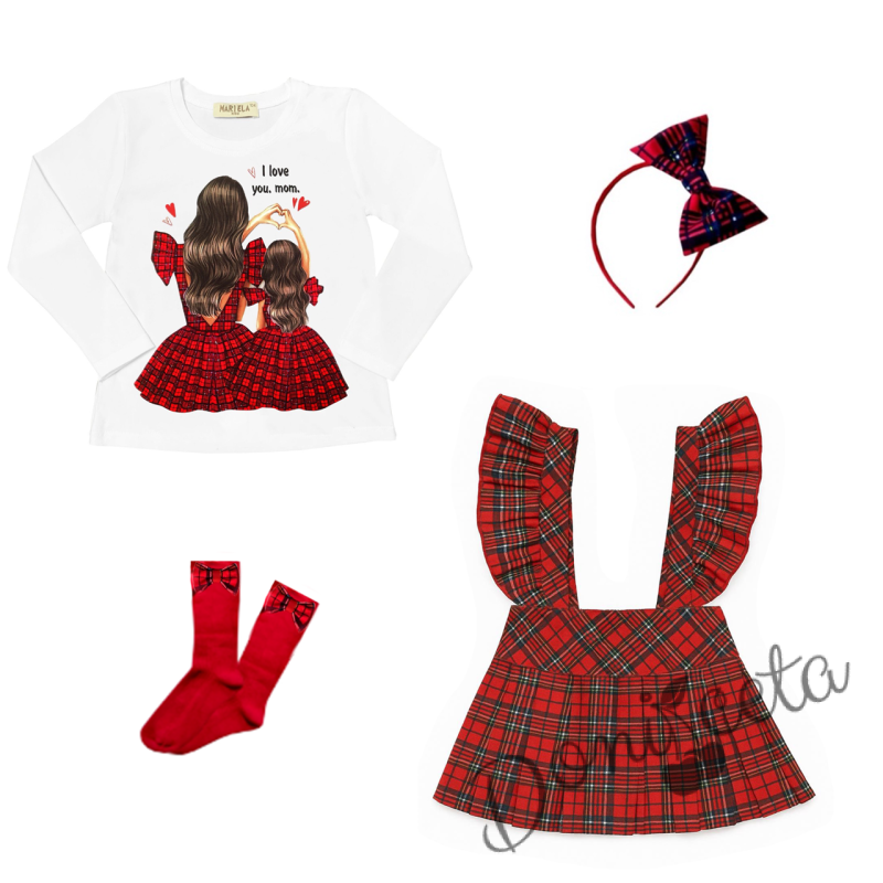 Подарете на вашето момиченце празнично настроение с този очарователен комплект за момиче, състоящ се от блуза с дълъг ръкав, сукман каре, червени чорапки и диадема с панделка в каре.