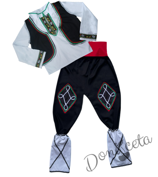 Мъжка или детска народна народна носия за момче 96 с фолклорни/етно мотиви, с елек и пояс в червено и гети