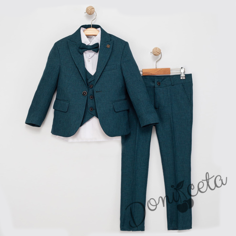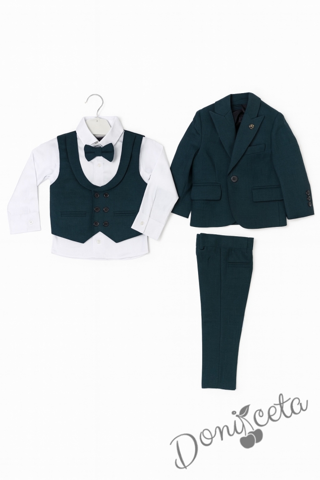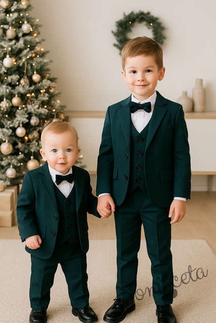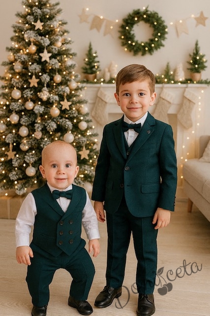 Официален детски костюм за момче от 5 части със сако в тъмнозелено