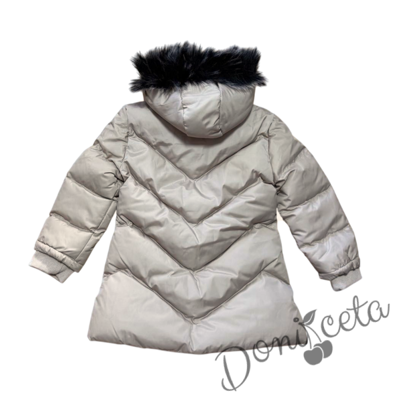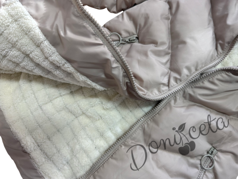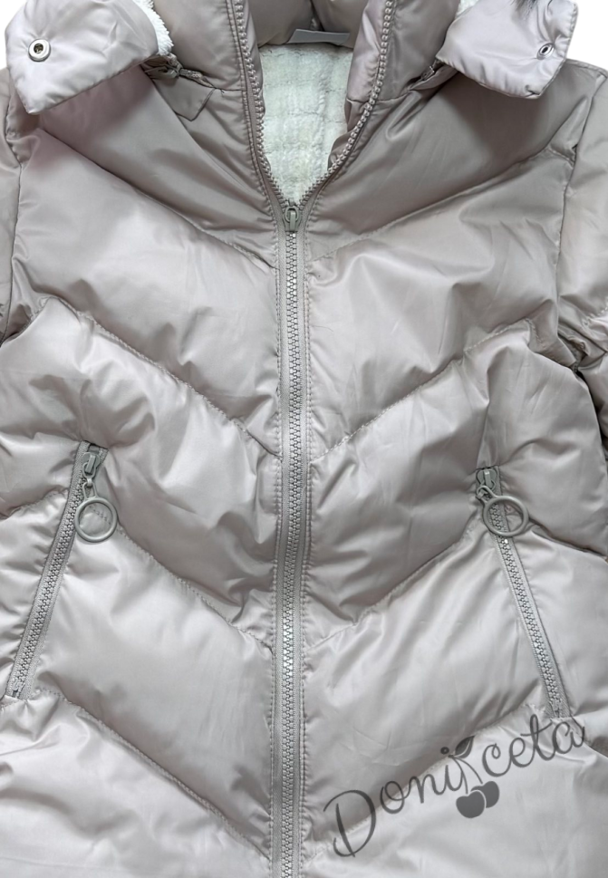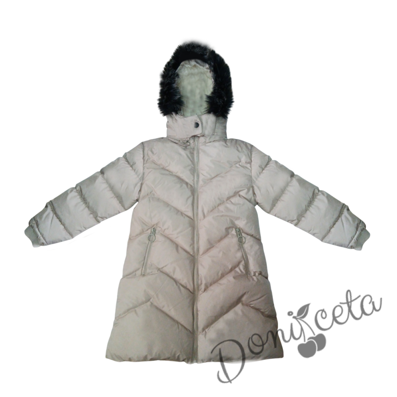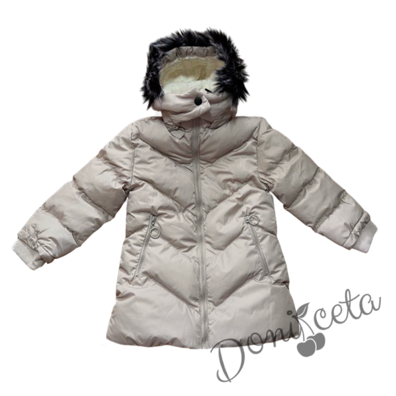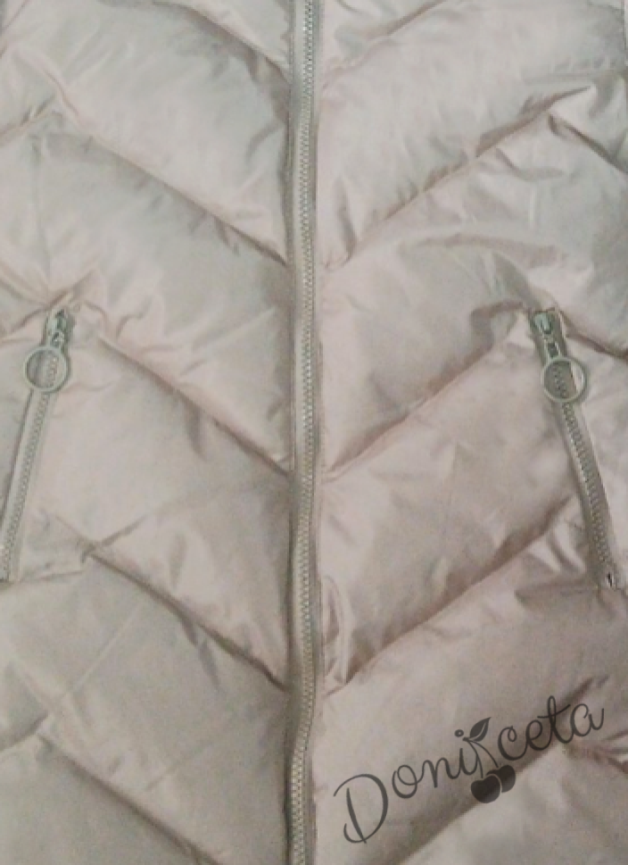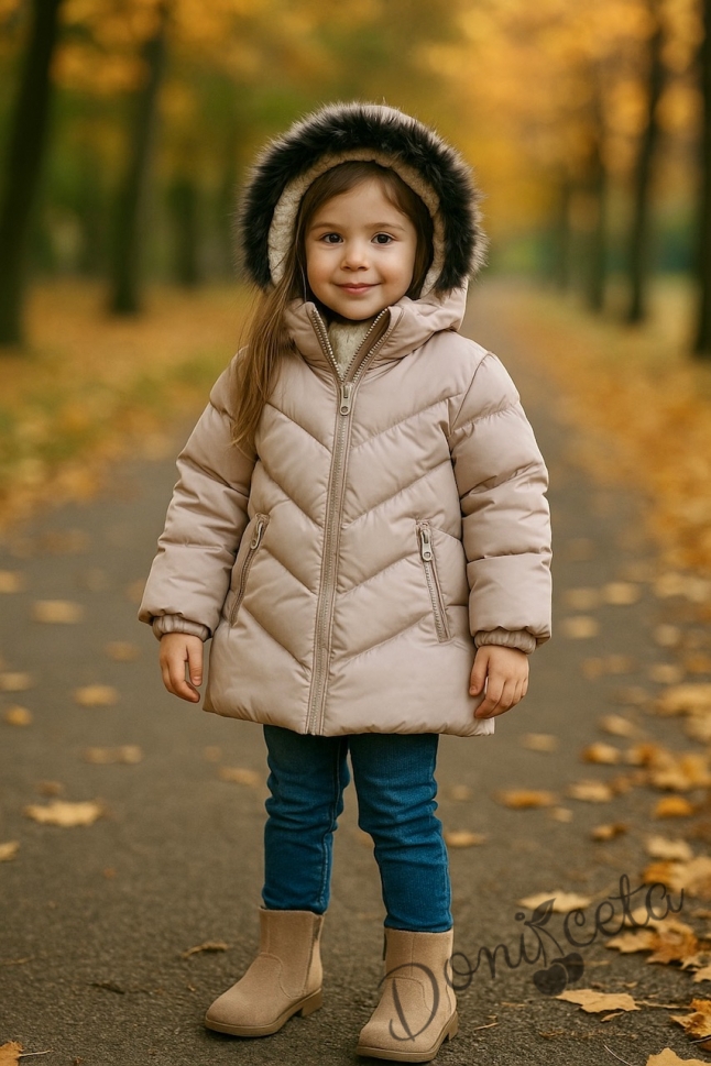 - Стилно зимно яке в бежов цвят с качулка с пух.